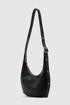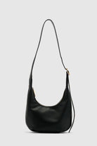 A classic croissant shape, with gold hardware and an adjustable shoulder strap to sit comfortably against the body by Australian designer Brie Leon.