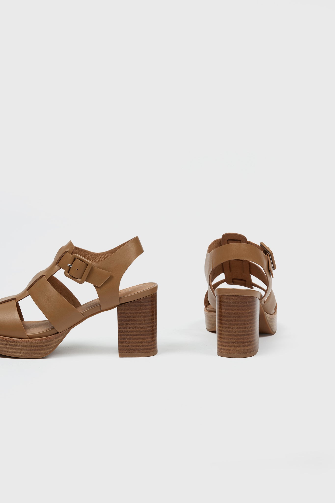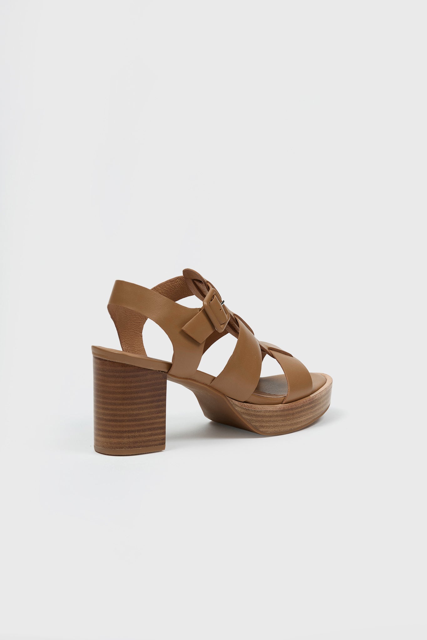 The Colina Strap heel is a strappy platform. This style includes an ankle strap with a self-covered buckle. Made in smooth leather.