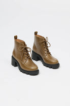 The Eldorado Boot is a round-toe, lace up style with chunky heel and lug sole. This style features contrast cream stitching. Made in a smooth oiled leather and lined in a camel colour leather inner.