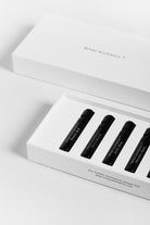 Explore Mihan Aromatic’s full collection of parfums with a Discovery Set which includes Mikado Bark, Sienna Brume, Guilty Story, Petrichor Plains, Munlark Ash and Kirra Curl.
