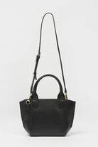 The Oliwa Bag is a mid-sized handbag with a top handle and fanned out sides. This style offers a removable shoulder strap, an internal pocket, and gold hardware finishes. Made in a soft but structured leather, lined in dark green cotton.