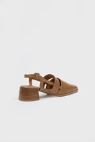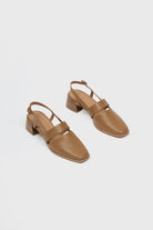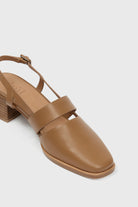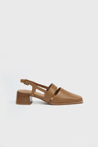 The Savannah is a closed-toe slingback sandal with cut out straps and self-covered buckle detail. Made in smooth leather.