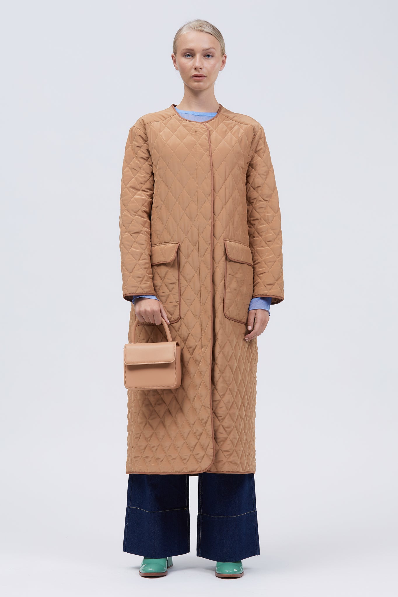 The Pina Bag is a boxy mini crossbody bag featuring a magnetic closure flap, gold hardware, handle and removable adjustable shoulder strap. Features an internal pocket and zipper compartment, made in leather.