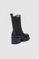 The Halo Boot is a tall pull-on style with a rounded toe and chunky heeled lug sole. This style includes elastic panels on the sides for ease of pulling on. Made in soft, smooth leather and lined in a camel colour leather inner.