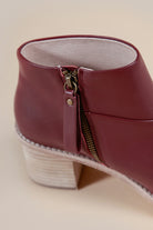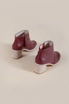 the lerolle boot is a heeled boot with 0.8cm platform at the front of shoe, and a 6cm high heel. it features a cross panel detail across shoe, and side zip closure.