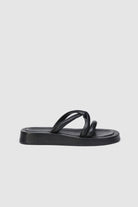 The Mambo Sandal is a platformed sandal with padded cross-over leather straps.