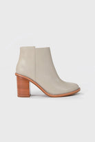 The sandy boot is a round toed ankle boot with a stacked leather heel and inner ankle zip made in a soft leather.