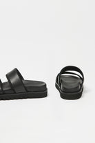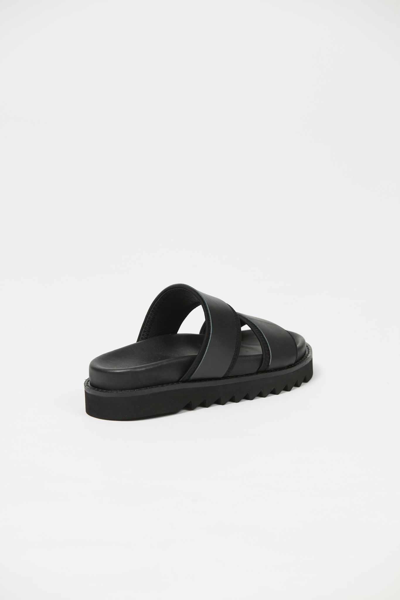 The Suco Slide is an open toe, slide on style. This style offers layered upper straps and a chunky sole. Made with neoprene and smooth leather.
