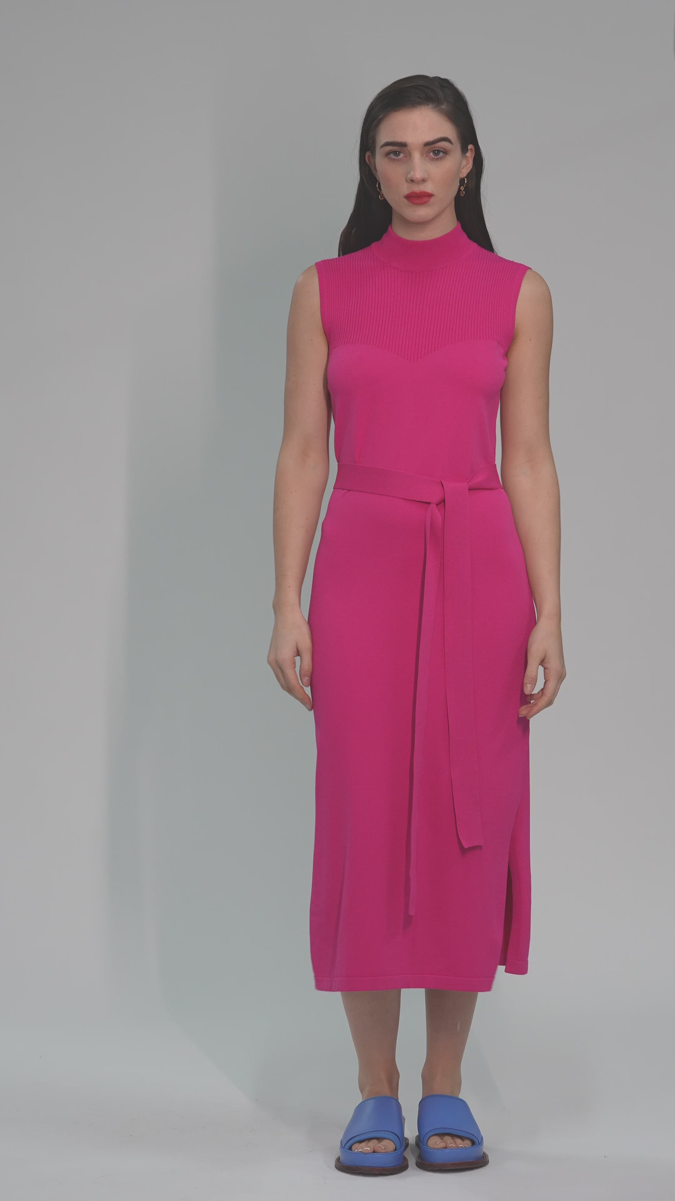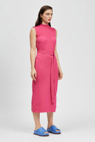 The Kiboko Dress is a sleeveless, mid-length dress offering a contrast rib detailing and a detachable waist tie. Made in a soft Rayon/Nylon blend.