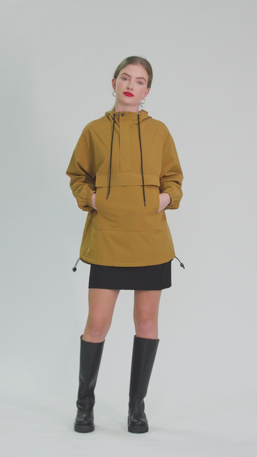 The Milo Mi Anorak is a relaxed-fit, hooded style. Features include an exaggerated front patch pocket, with two compartments; the first accessible through the concealed zip under the pocket flap, the other through the side pocket openings. This style offers drawstring detailing around the hood and inside the hem. Made with a water-resistant outer and fully lined with black satin.