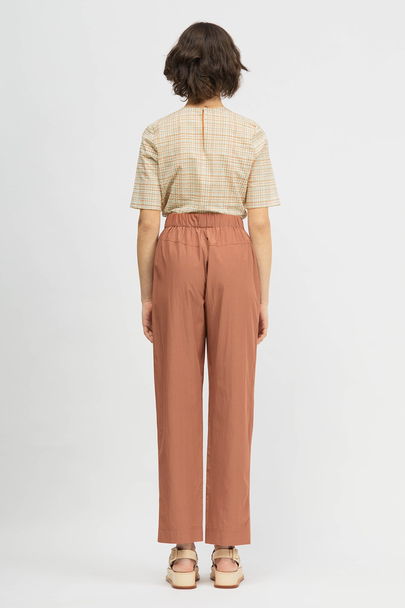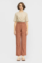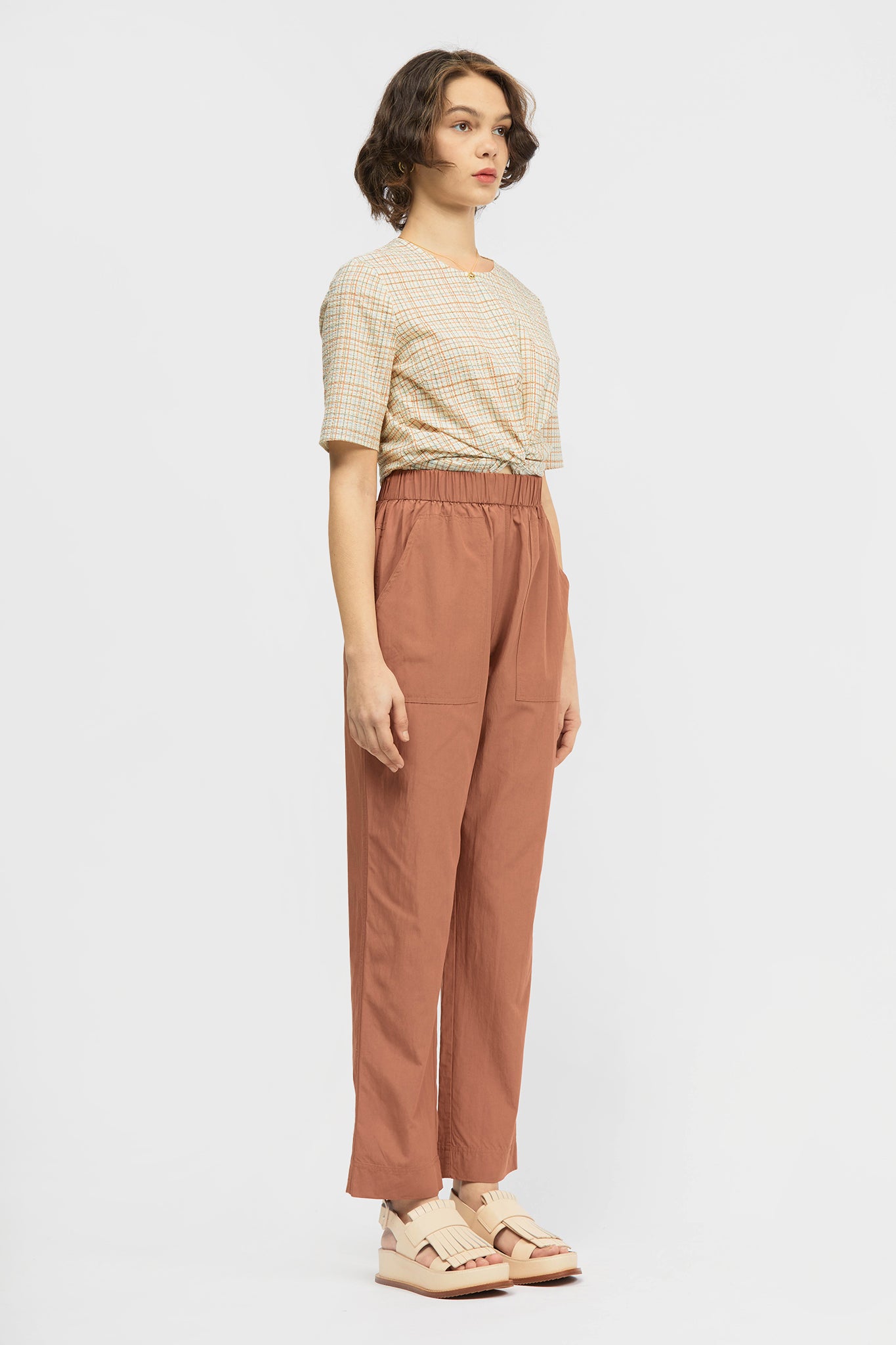 The Hwaga Pant is a full-length, high-waisted, straight leg style in a regular fit. Features include a wide elasticated waistband, large slanted patch pockets and topstitch detailing. This style is made in a lightweight viscose/cotton blend.