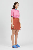 The Curto Skirt is a high-waisted, a-line, mini-length style with a regular fit. This style is cut on the bias and includes a concealed elasticated waist and back darts. Made in a soft linen blend. This style can be paired back with your existing wardrobe favourites or with the Fazer Wrap Singlet in matching fabric as a set.