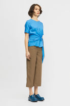 The Bia Top is a regular fit style with a round neck and short sleeves. This style features a side tie that can be knotted or tied into a bow and a centre back invisible zipper closure. Made in a soft and silky cupro/ viscose blend.
