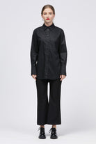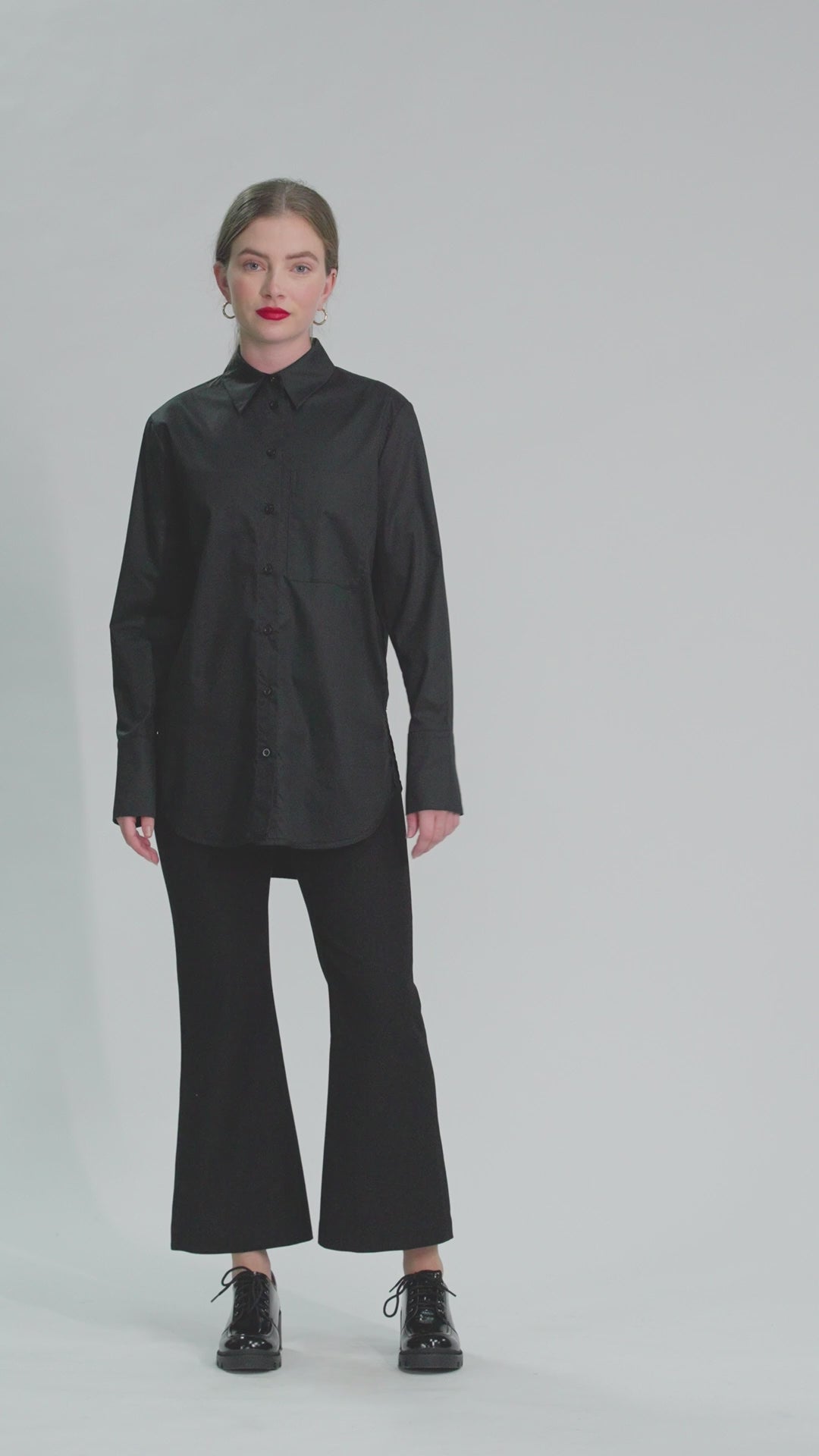 The Witam Shirt is an oversized-fit, classic button-up style. This style offers a breast patch pocket and horizontal back seam detail. Made in a Tencel/Cotton blend.