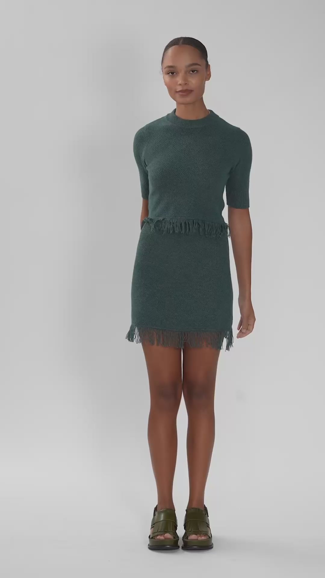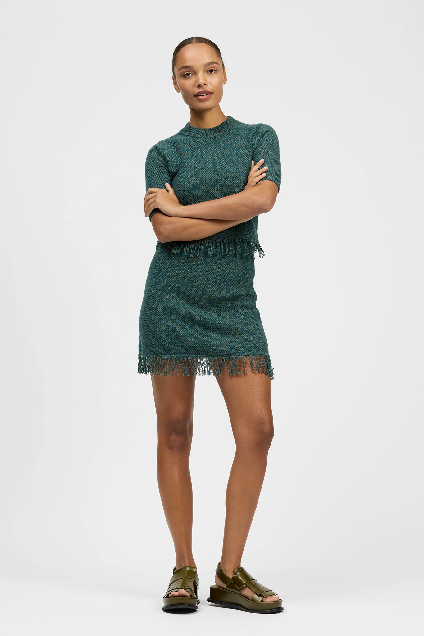 The Borla Skirt is a mini length skirt featuring fringe detailing along the hemline. Made in 100% textured cotton. This style can be paired with your existing wardrobe favourites or with the Borla Top in matching fabric as a set.