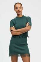 The Borla Top is a cropped knit style with half sleeves, featuring fringe detailing along the sleeve edges and body hemline. Made in 100% textured cotton. This style can be paired with your existing wardrobe favourites or with the Borla Skirt in matching fabric as a set.