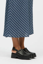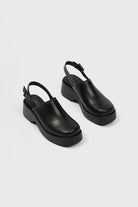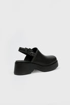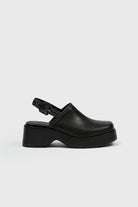 The Carola Clog is a round-toe design featuring an ankle strap with contrast stitch detailing. This style offers a self-covered platform heel and lug sole. Made in smooth leather.
