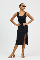 — Scallop detail on hemline and split