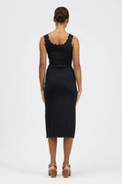 The Concha Skirt is a midi-length style featuring a scalloped design detail along the hemline and split. Made in a Viscose/Nylon stretch blend. This style can be paired with your existing wardrobe favourites or with the Concha Top in matching fabric as a set.