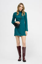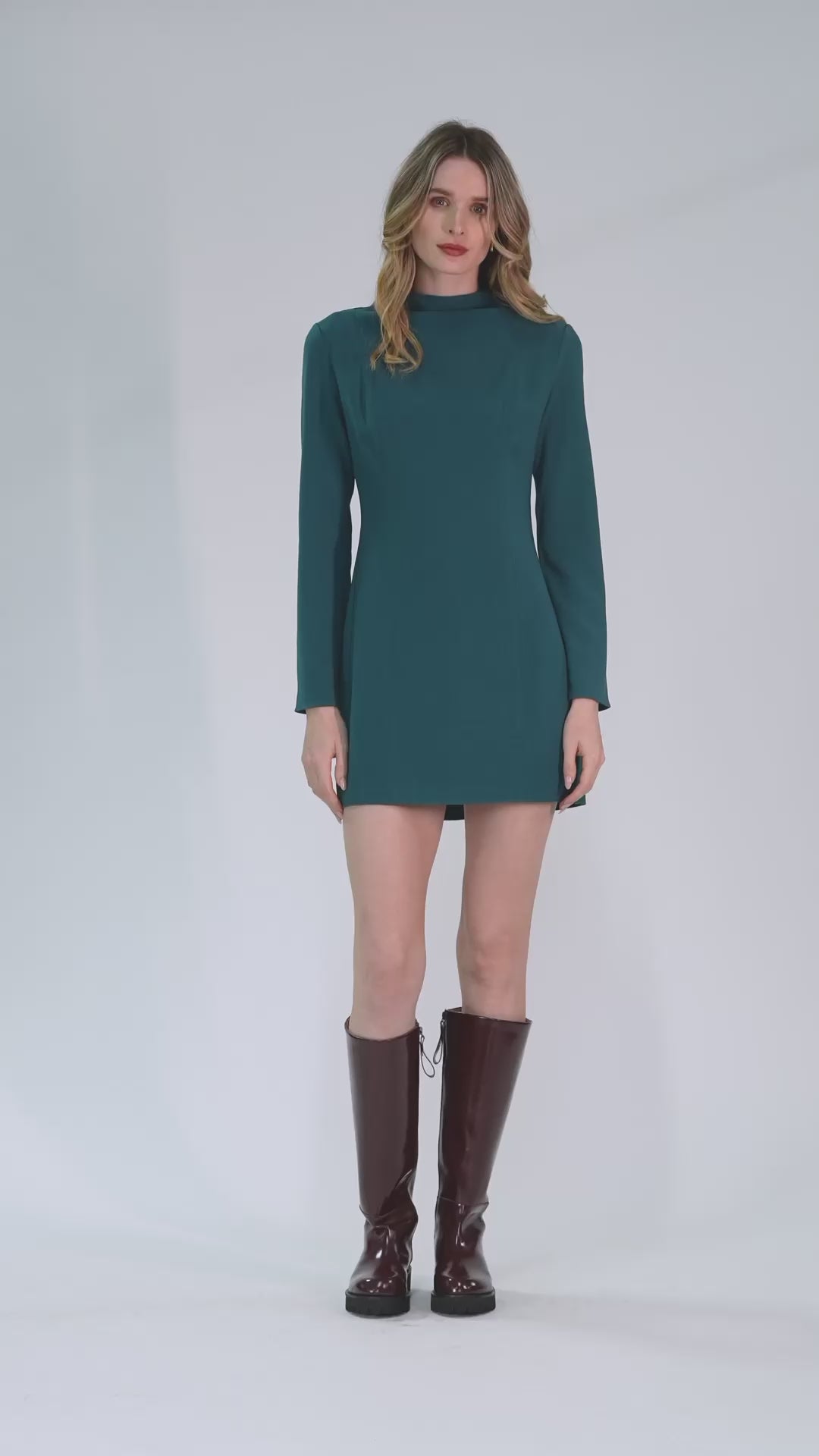The Cirrus Dress is a long sleeve, mini-length dress in a regular fit. Design details include a high neckline, flared wide sleeves, an exposed metal back zip fastening and panelling throughout. Made in a soft but structured stretch polyester fabrication.