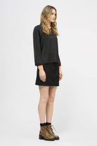 The Stokes Top is a relaxed fit style with long sleeves and a round neckline. This style features a contrast orange and white striped rib at the neckline and cuffs. Made in a smooth and lustrous polyester fabrication.