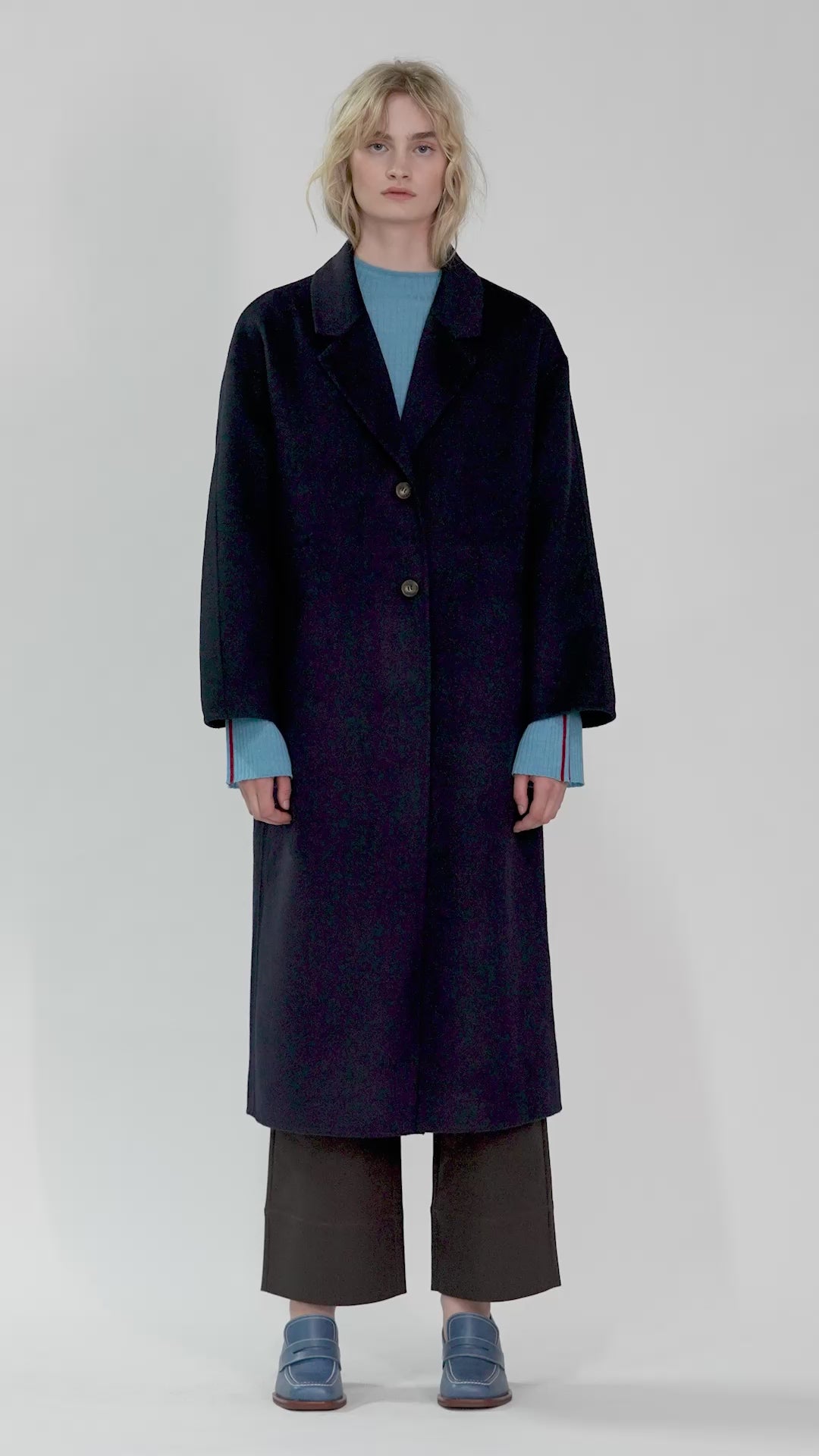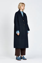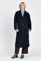 The Lehto Coat is a single-breasted style designed in a mid-length silhouette. This style features a classic collar and lapel, with a button-up front, and is made from a soft wool blend. Styled with the Kanala Pant and Helmi Heel.
