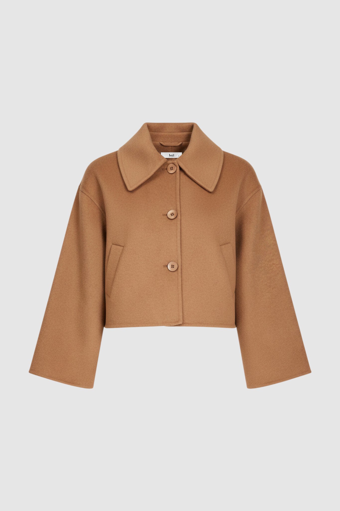 The Ranita Jacket is a cropped style featuring a button-up front. Made in a soft wool blend fabric and fully lined in a satin finish. Styled with the Kanala Pant.