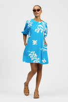 The Maria Dress is a shift silhouette with gathered sleeve openings, made in a soft Rayon and Lyocell blend.