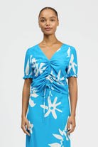 The Reuna Top features a drawstring tie front design with frilled sleeve openings, made in a soft Rayon and Lyocell blend. This style can be paired with your existing wardrobe favourites or with the Samara Skirt in matching fabric as a set.