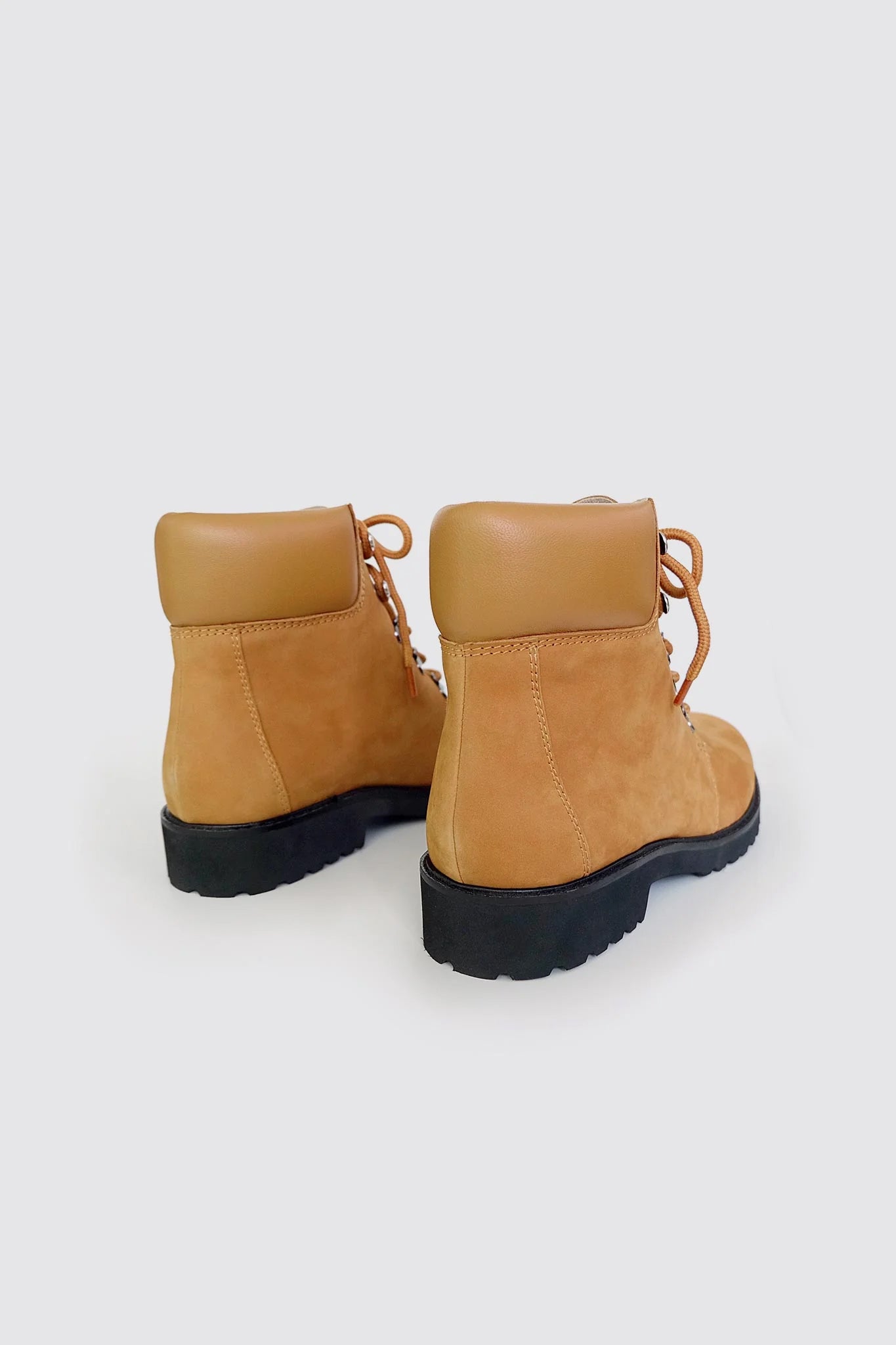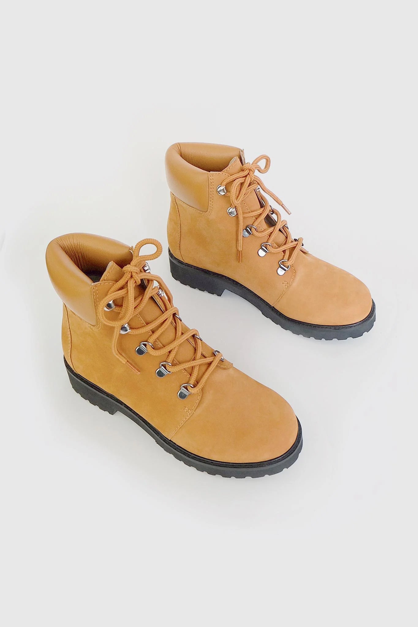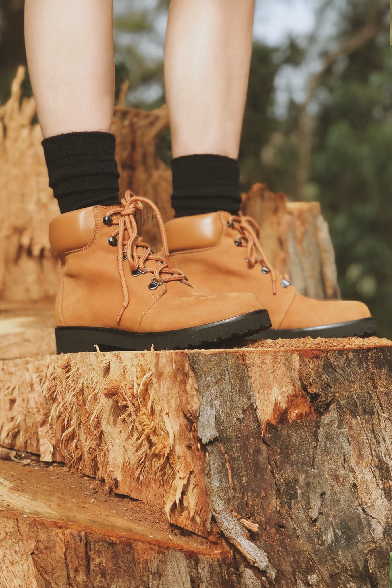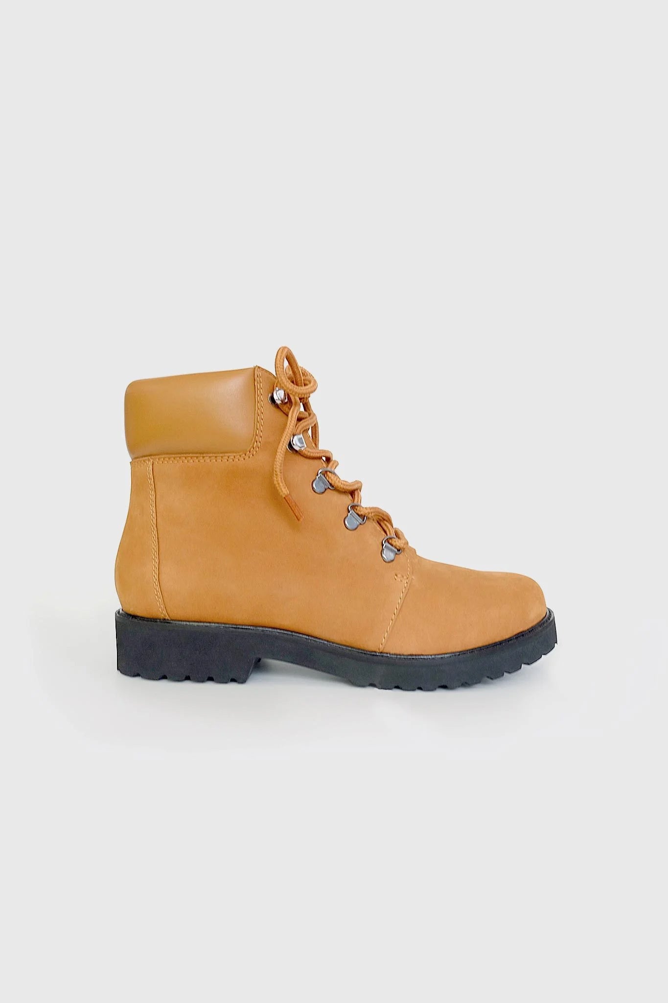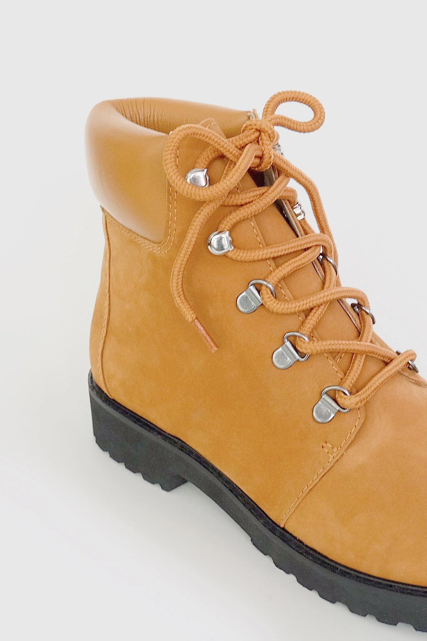 The cenotaph boot is a hiking style boot with lace up front, padded ankle and rubber tread sole, with upper made in soft nubuck leather.