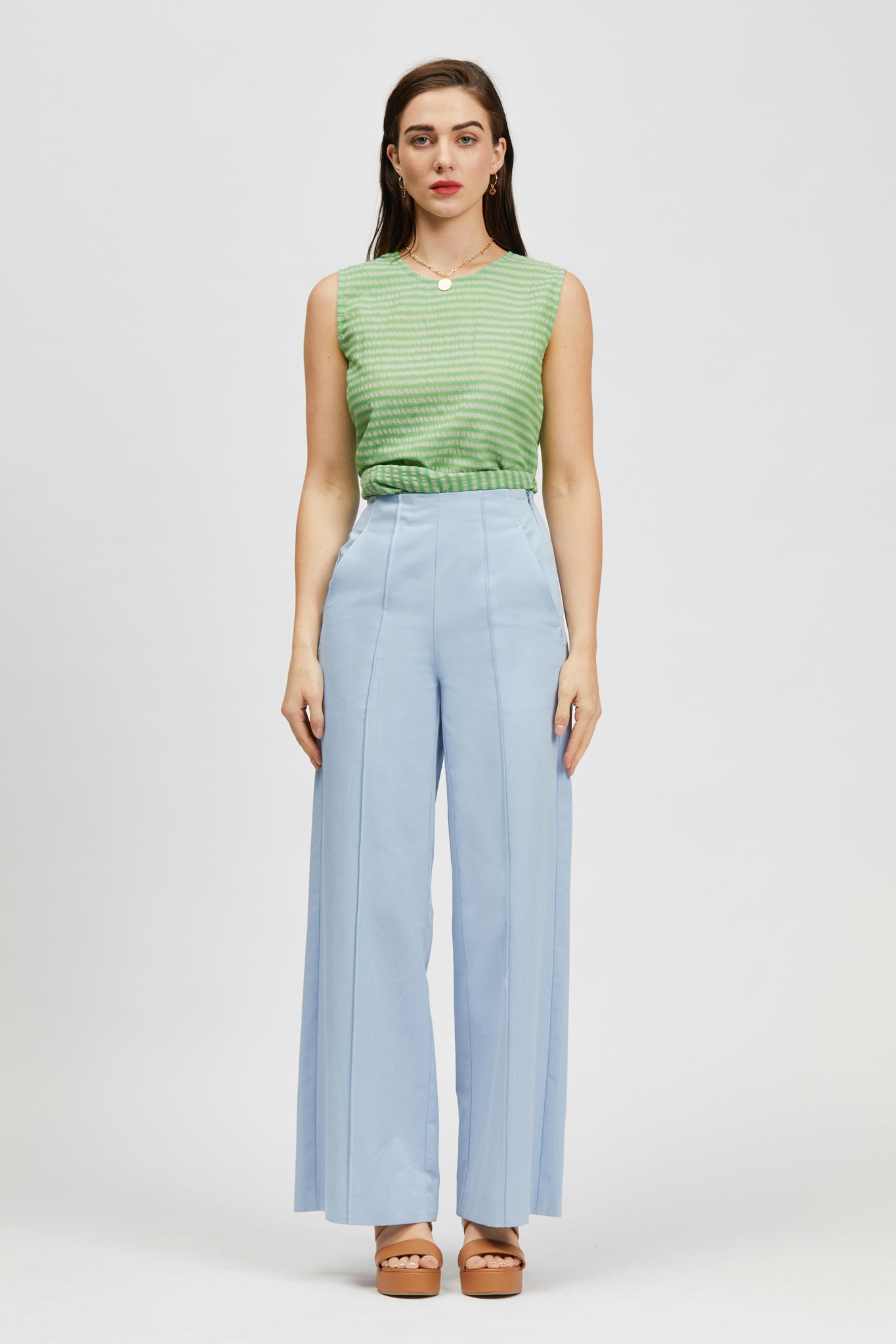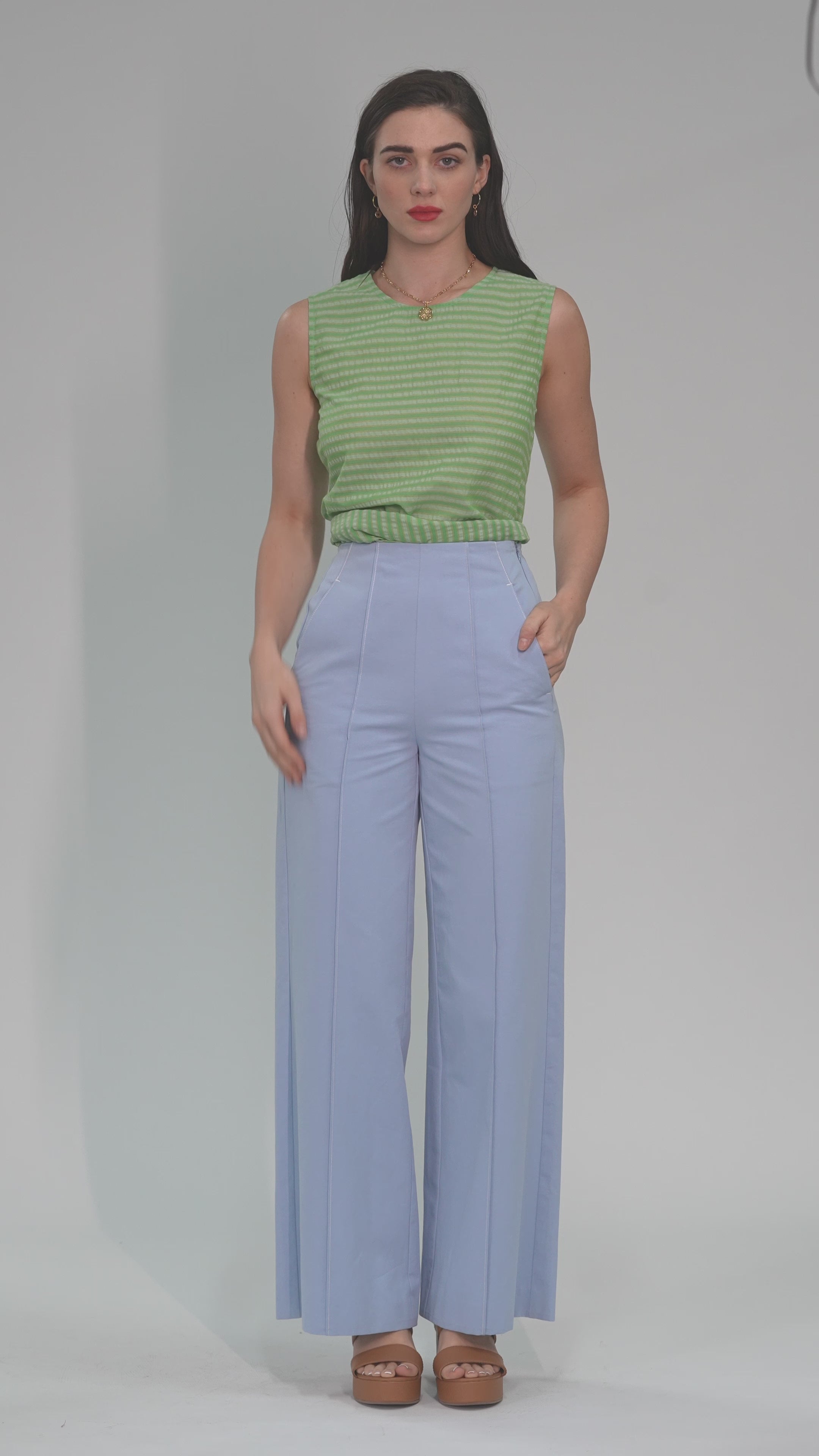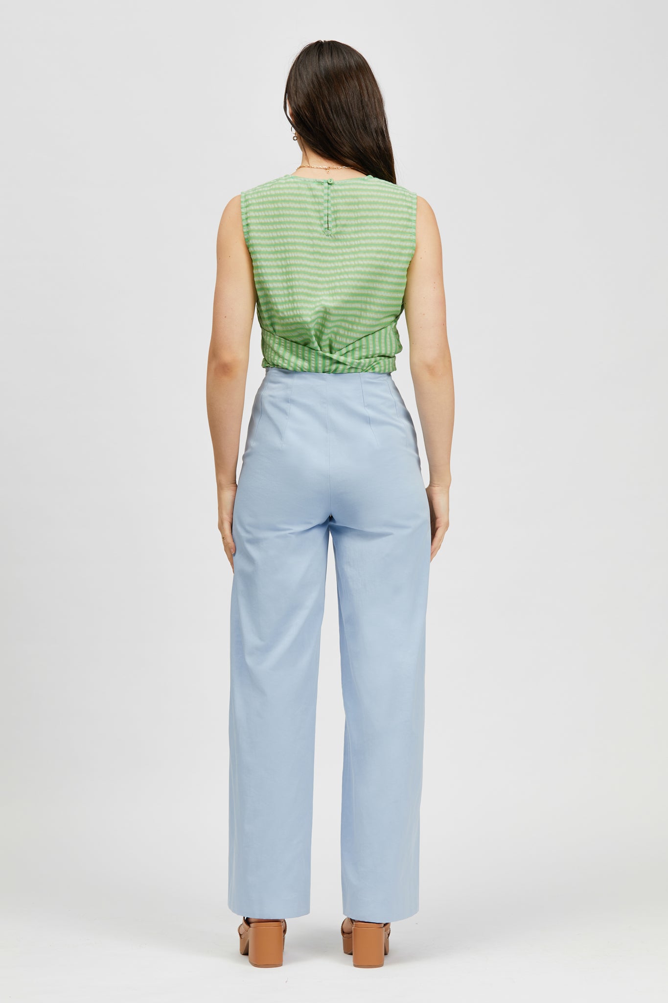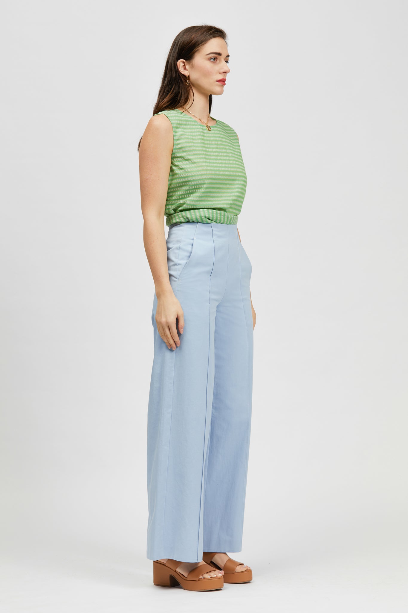 The Alto Pant is a full-length, high-waisted style with a wide leg. This style offers pintuck detailing, slant pockets, and double darts at the back. Made in a structured cotton fabrication. This style can be paired back with your existing wardrobe favourites or with the Ponte Jacket in matching fabric as a set.