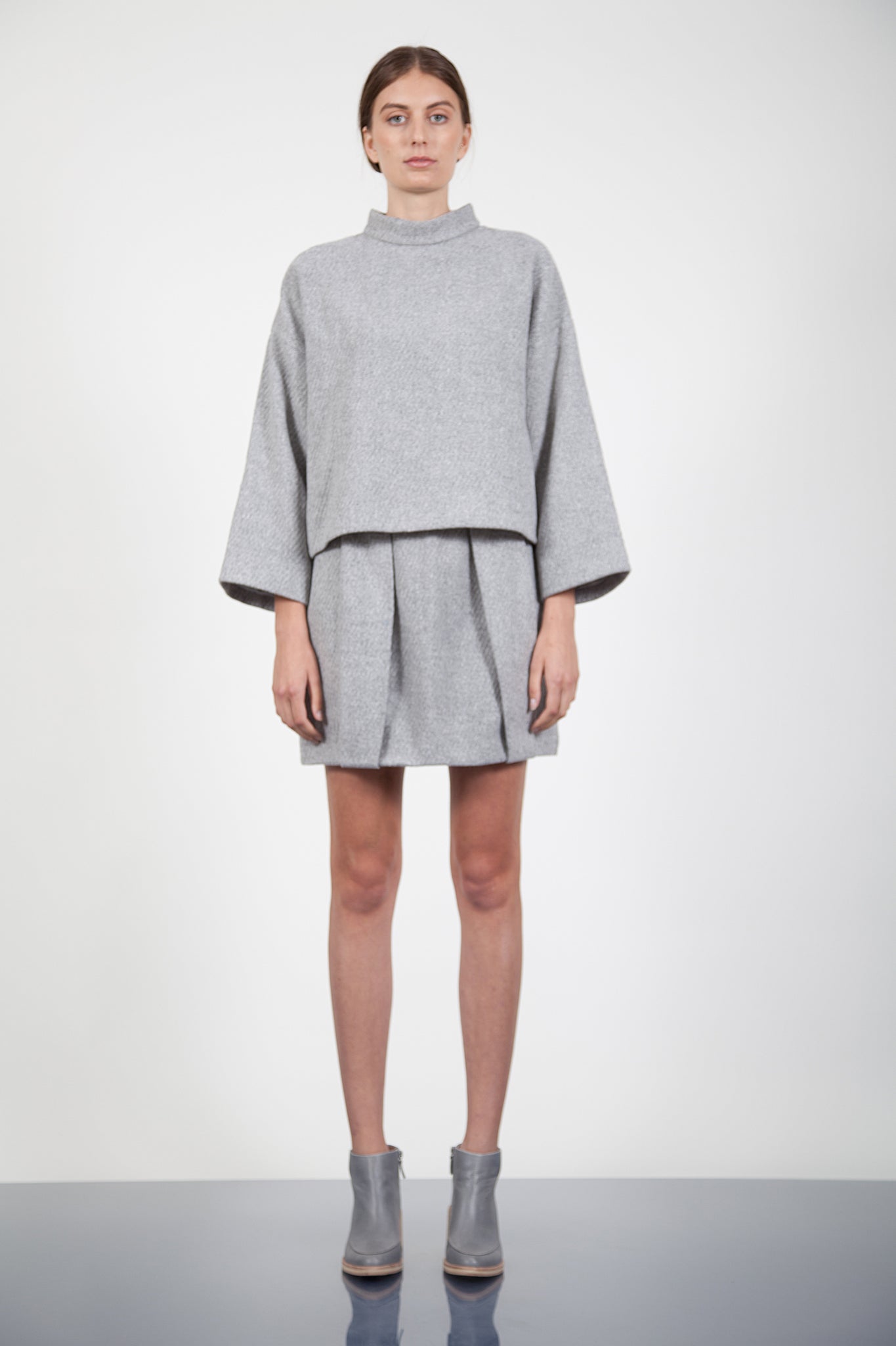 The Kintyre Skirt offers a boxy and structured shape, with tailored asymmetrical pleating, slit side pockets and is fully lined.