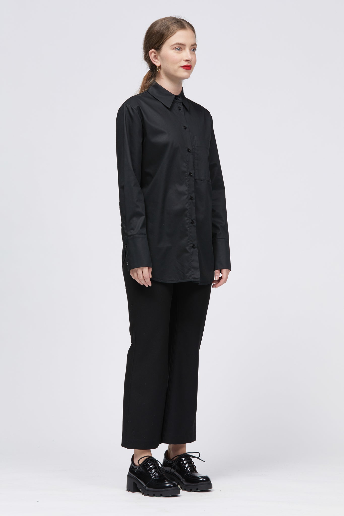 The Witam Shirt is an oversized-fit, classic button-up style. This style offers a breast patch pocket and horizontal back seam detail. Made in a Tencel/Cotton blend.