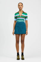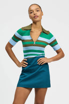 The Cierre Top is a fitted, half-zip style made in a yarn-dyed striped rib. Designed to sit close to the body, it features a collared neckline with a metal zip and detailed rib finish at the sleeves and hem. Made in a soft and lightweight Viscose/Nylon blend.