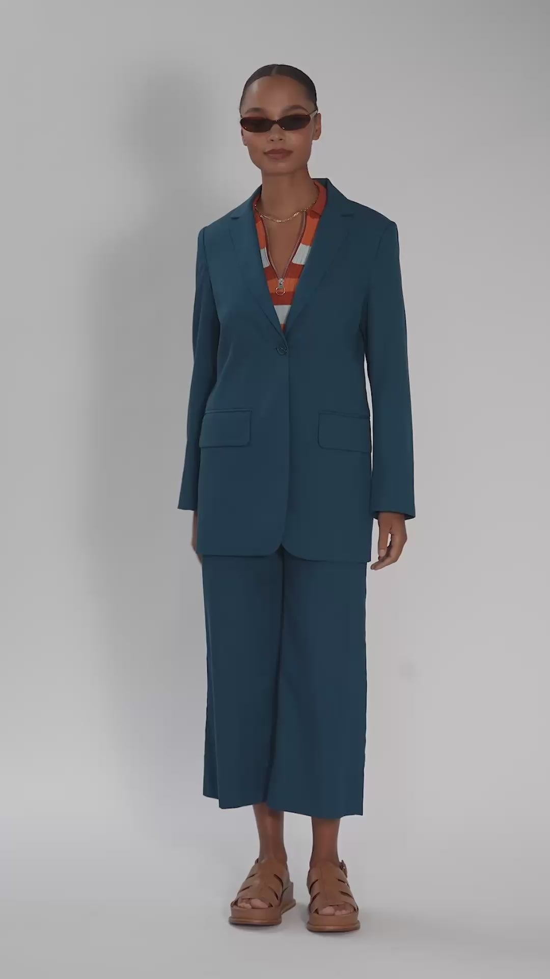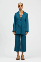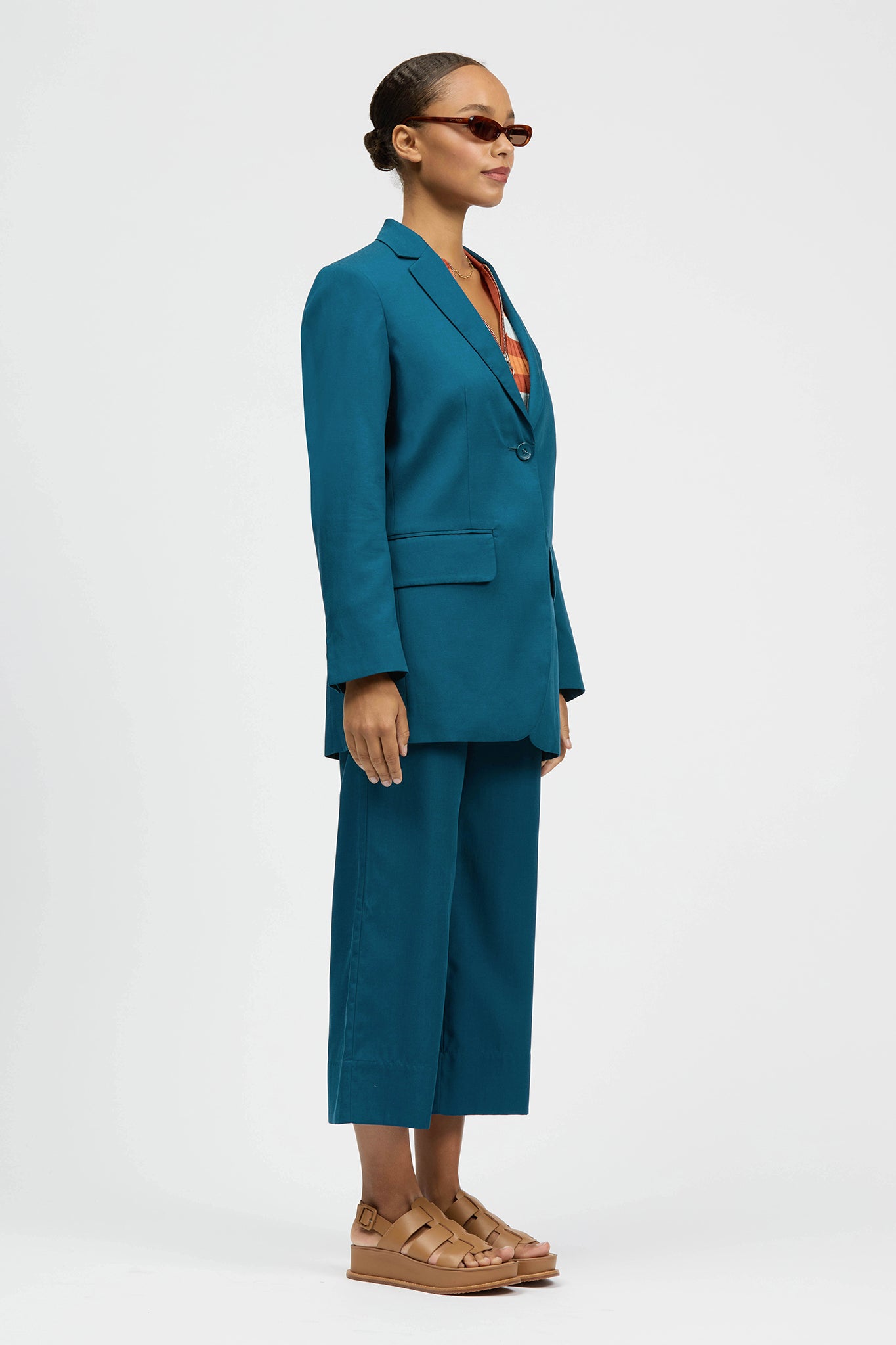 The Elara Blazer features a relaxed silhouette with side pocket detailing, made from a soft blend of Tencel and Cotton. This style can be paired with your existing wardrobe favourites or with the Lunar Skirt, Brisa Pant, or Mocanal Onesie in matching fabric as a set.