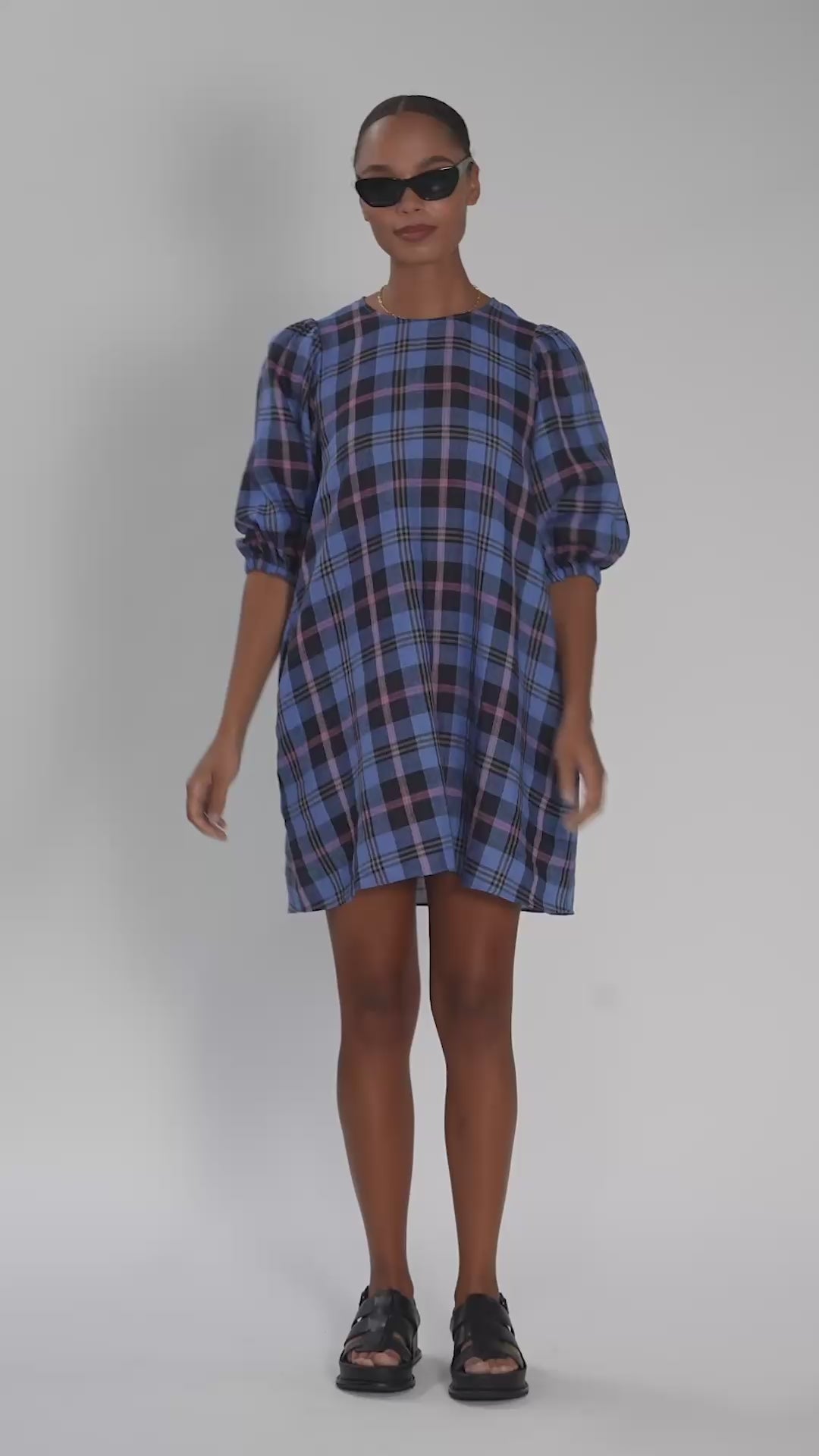 The Maria Dress is a shift silhouette with gathered sleeve openings, made in a soft Linen.