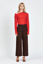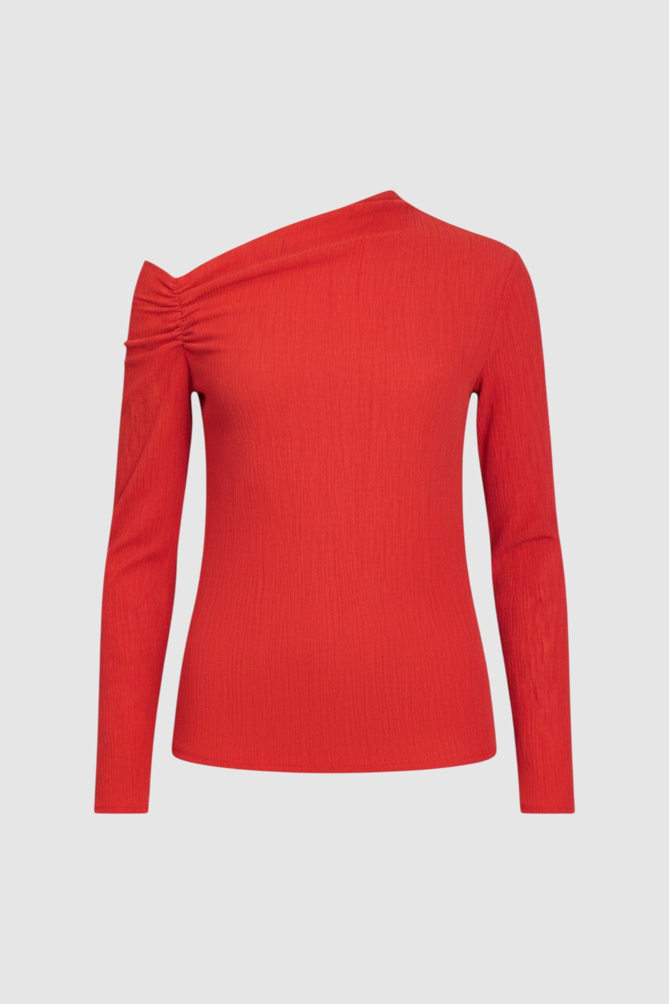 The Kaivo Top is a long sleeve, fitted style featuring an asymmetrical shoulder design. Made from a specialty textured pleated fabric blend with high stretch for comfort. Styled with the Kanala Pant and the Linna Heel.