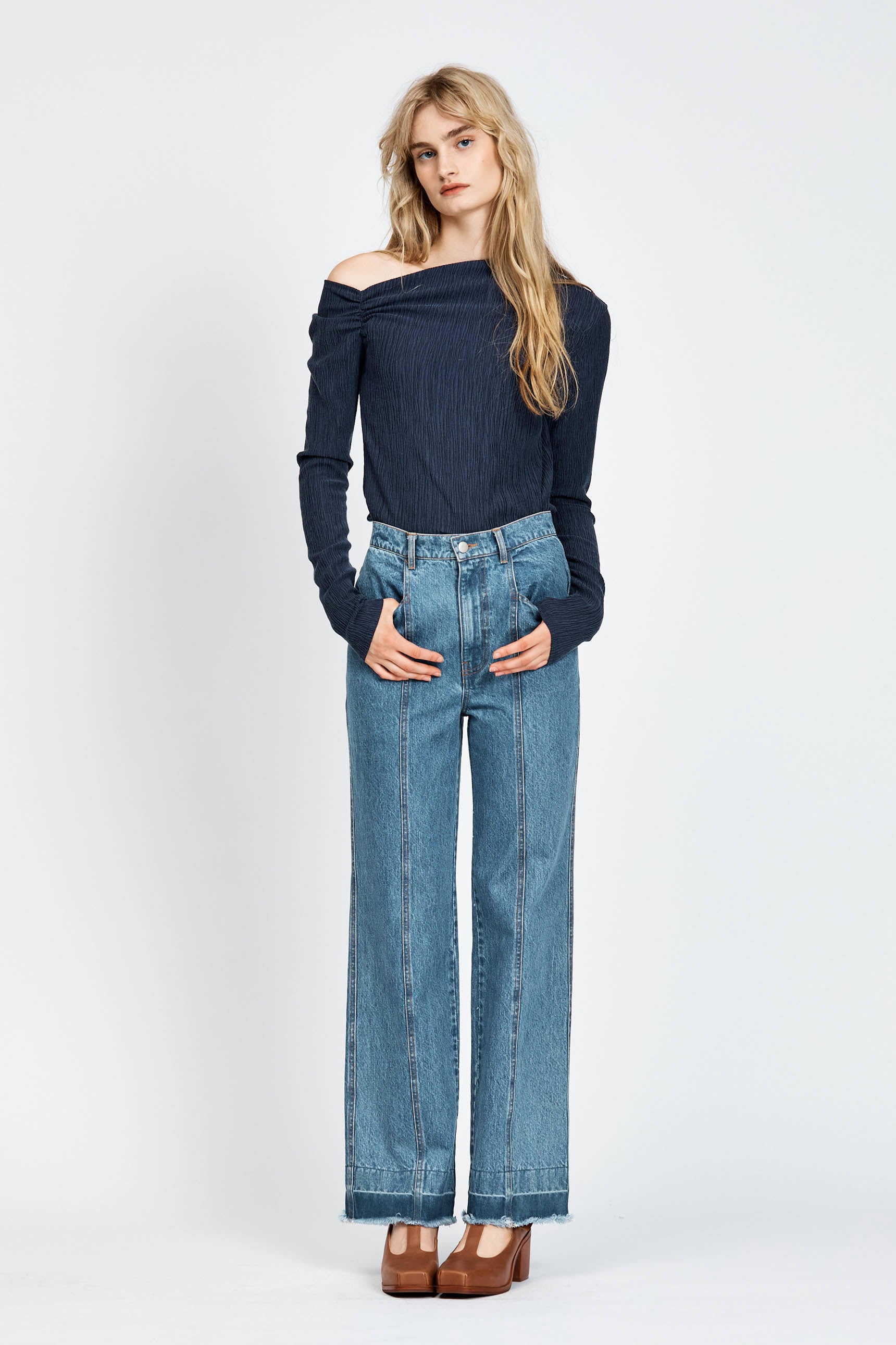 - Raw hem finish