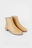The Boden Boot is an ankle length style with contrasting textured panel, subtle side zip and small stacked heel.
