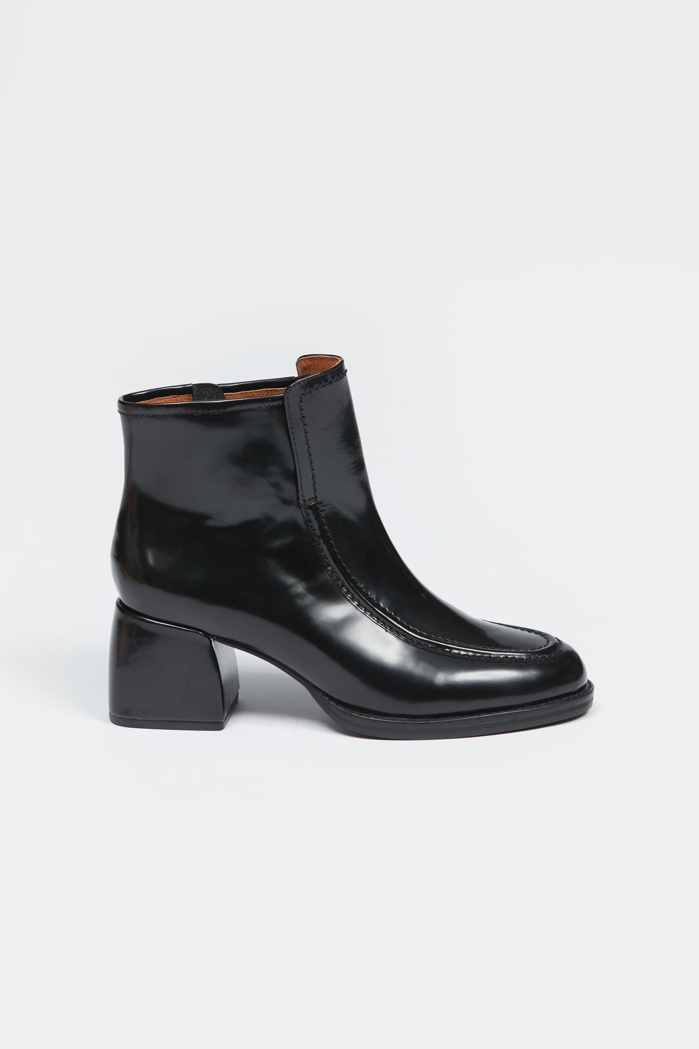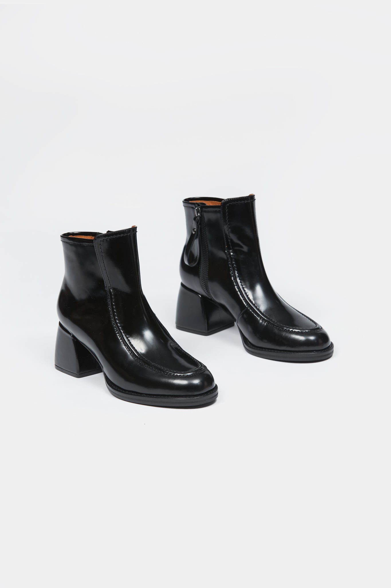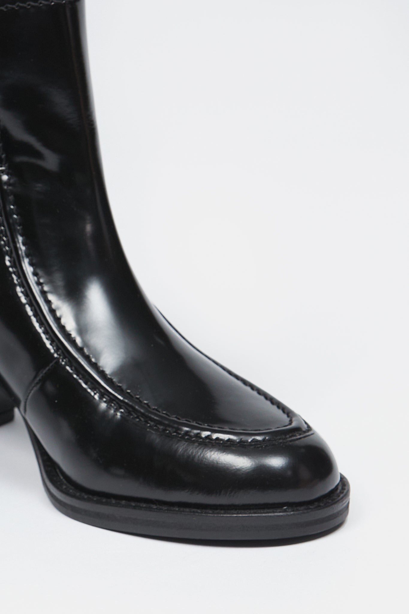 The Bua Loafer Boot is a round-toed loafer style with a self-covered heel. This style features an inner leg zip for fastening and stitching details. Made in soft, glossy box leather and lined in a camel colour leather inner.