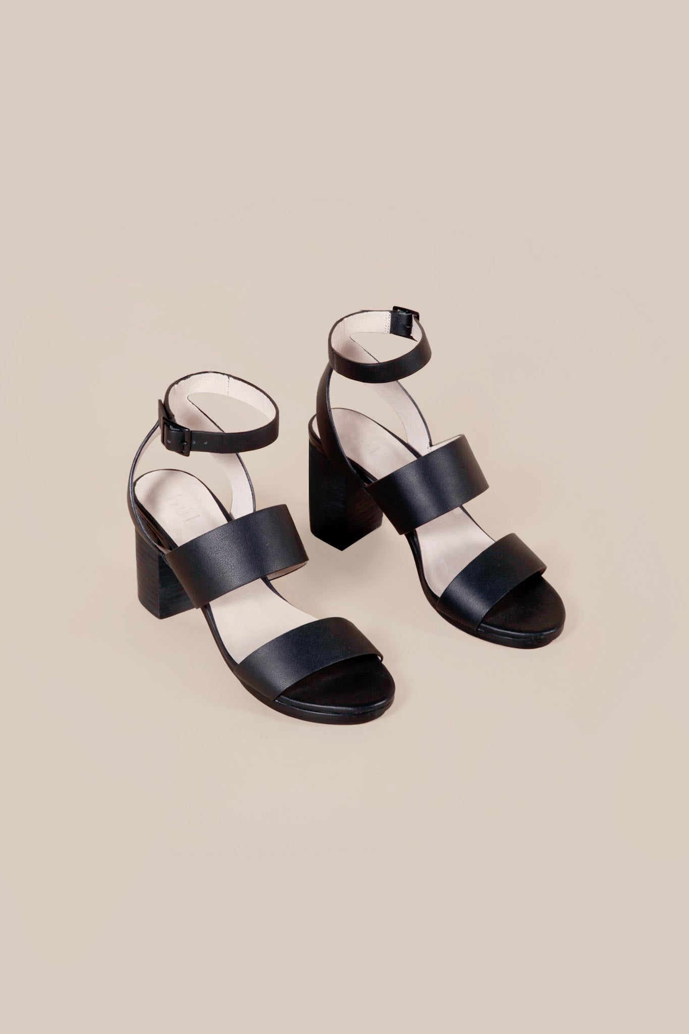 the cox is a two-strap heel. a stylish and classic shoe featuring two wide straps and a chunky heel.