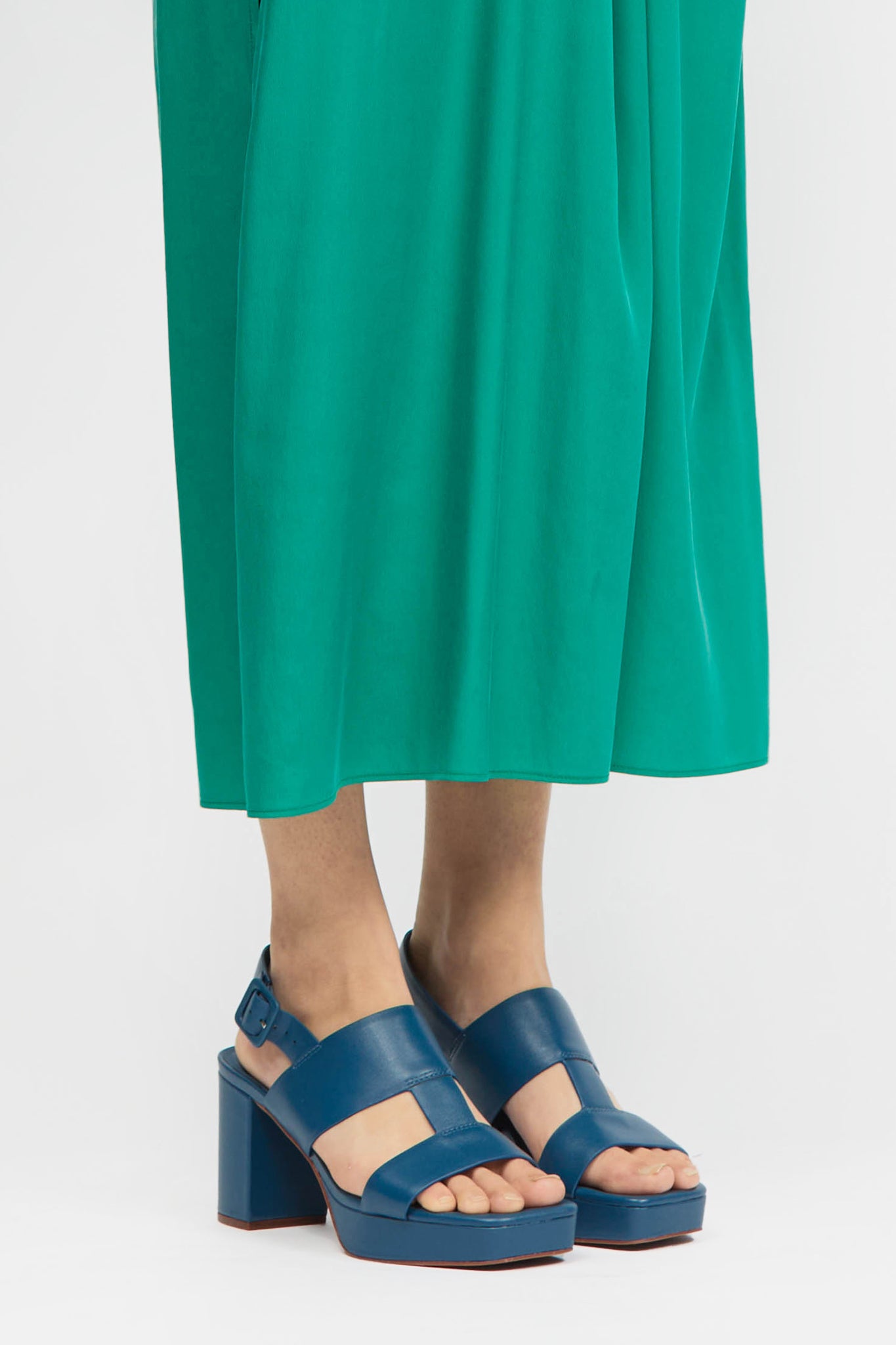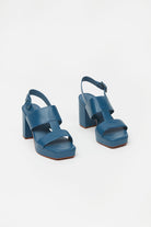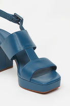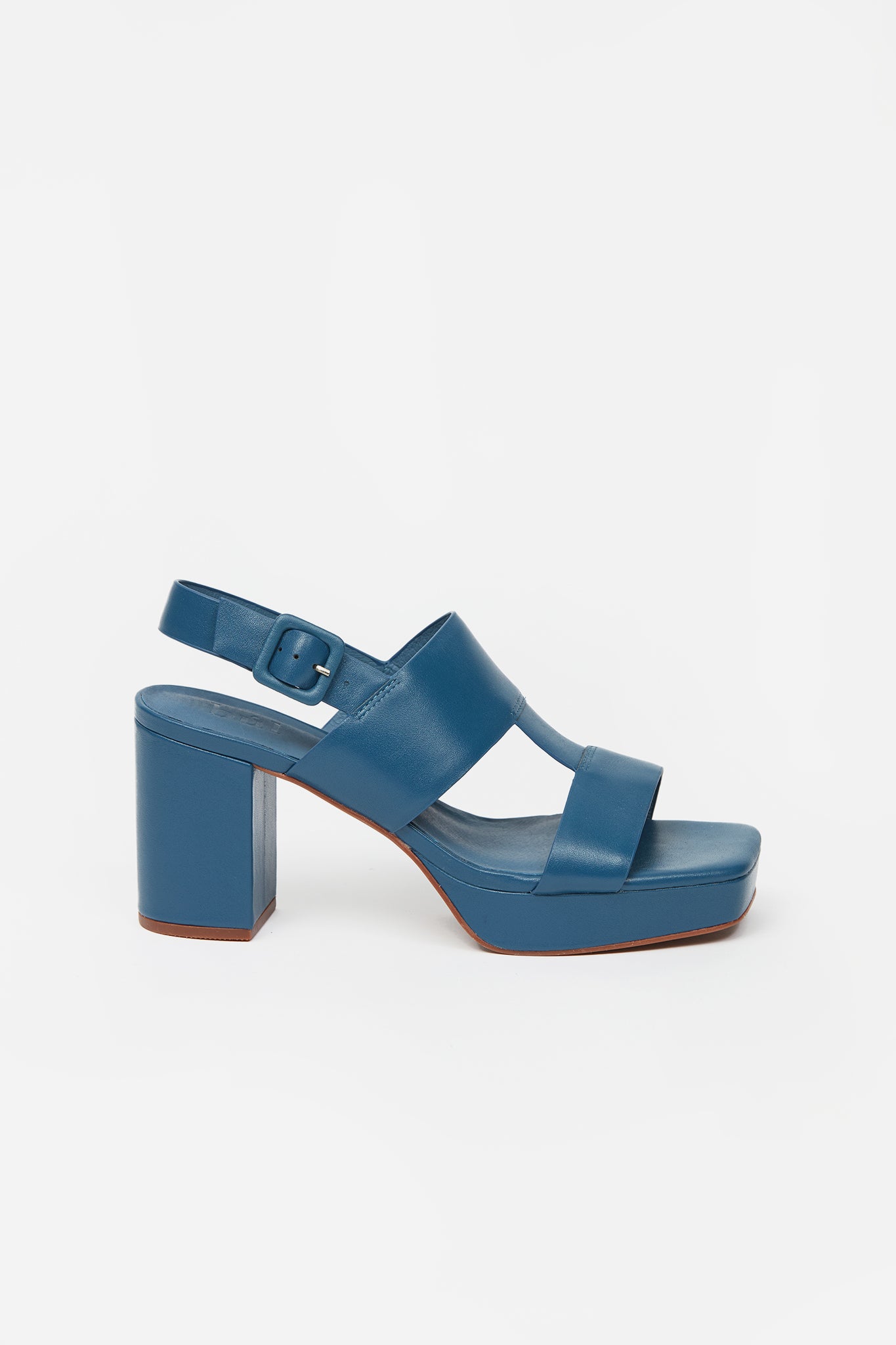 The Jaemi Heel is an open-toed, self-covered platform heel in a T-bar style. This style offers an ankle strap with self-covered buckle and topstitch detailing. Made in smooth leather.