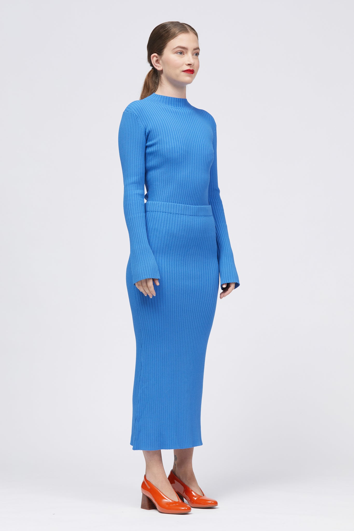 The Kopalina Skirt is a high-waist, mid-length style with a fitted silhouette. Features include the self-covered elasticated waistband. Made from a Viscose blend, this skirt offers a comfortable, cosy fit.