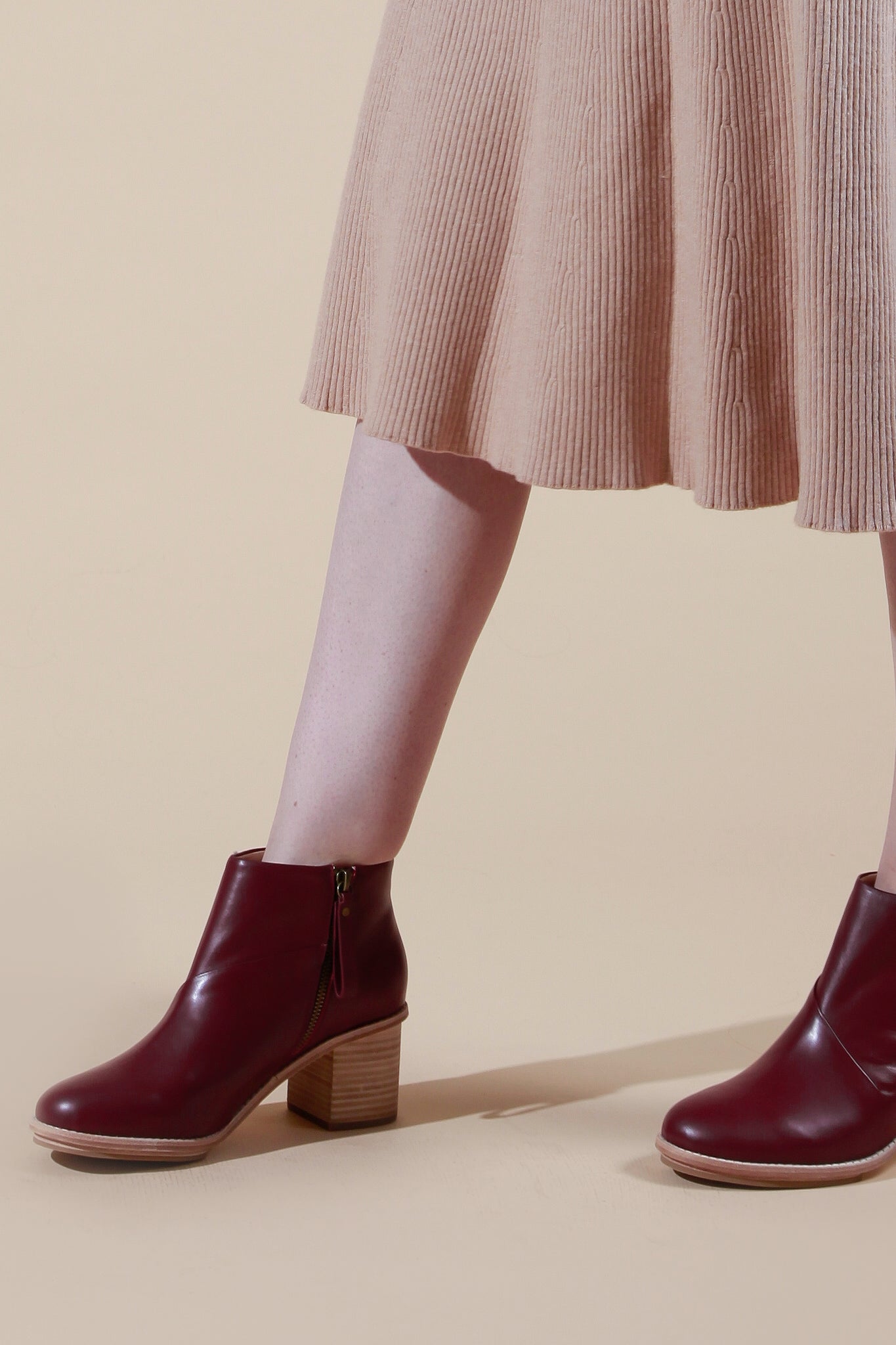 the lerolle boot is a heeled boot with 0.8cm platform at the front of shoe, and a 6cm high heel. it features a cross panel detail across shoe, and side zip closure.