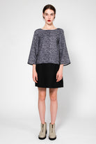 the machen top is a round neck long sleeve top, featuring a low round back line.
