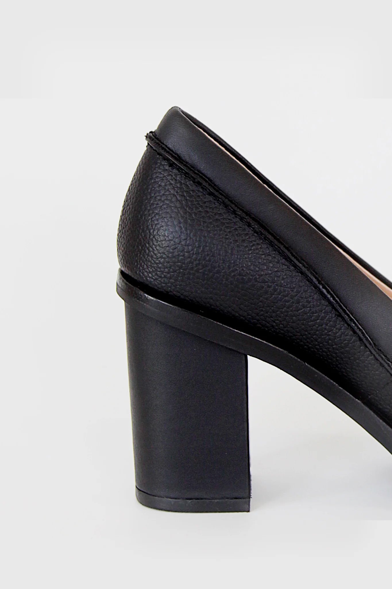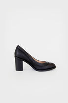 The Tippen Heel is a sophisticated leather pump with a pointed toe, contrast textured panel and a chunky heel.