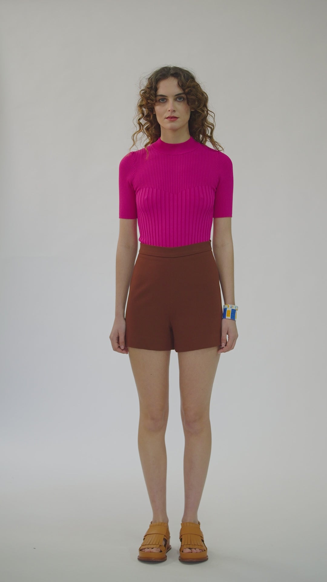 The Tulia Short is a fitted, mini-length, high-waisted style. This style includes back darts and invisible side zip fastening, finished with an invisible hem. Made in a stretch Tencel blend.