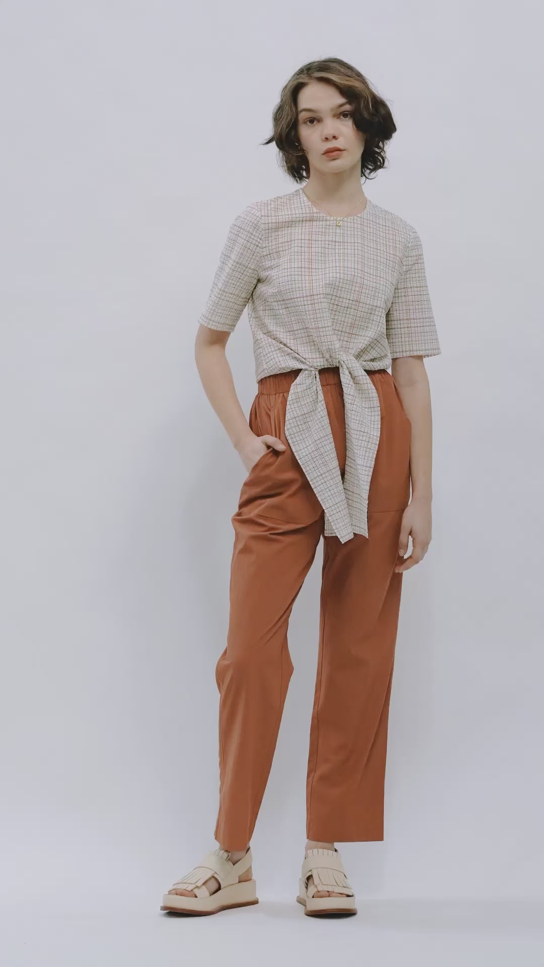 The Ver Top is a short-sleeve, regular fit style. This style offers front ties which can be wrapped around the body, fastened at the front, left hanging or tucked in. Made with a cotton seersucker fabrication.