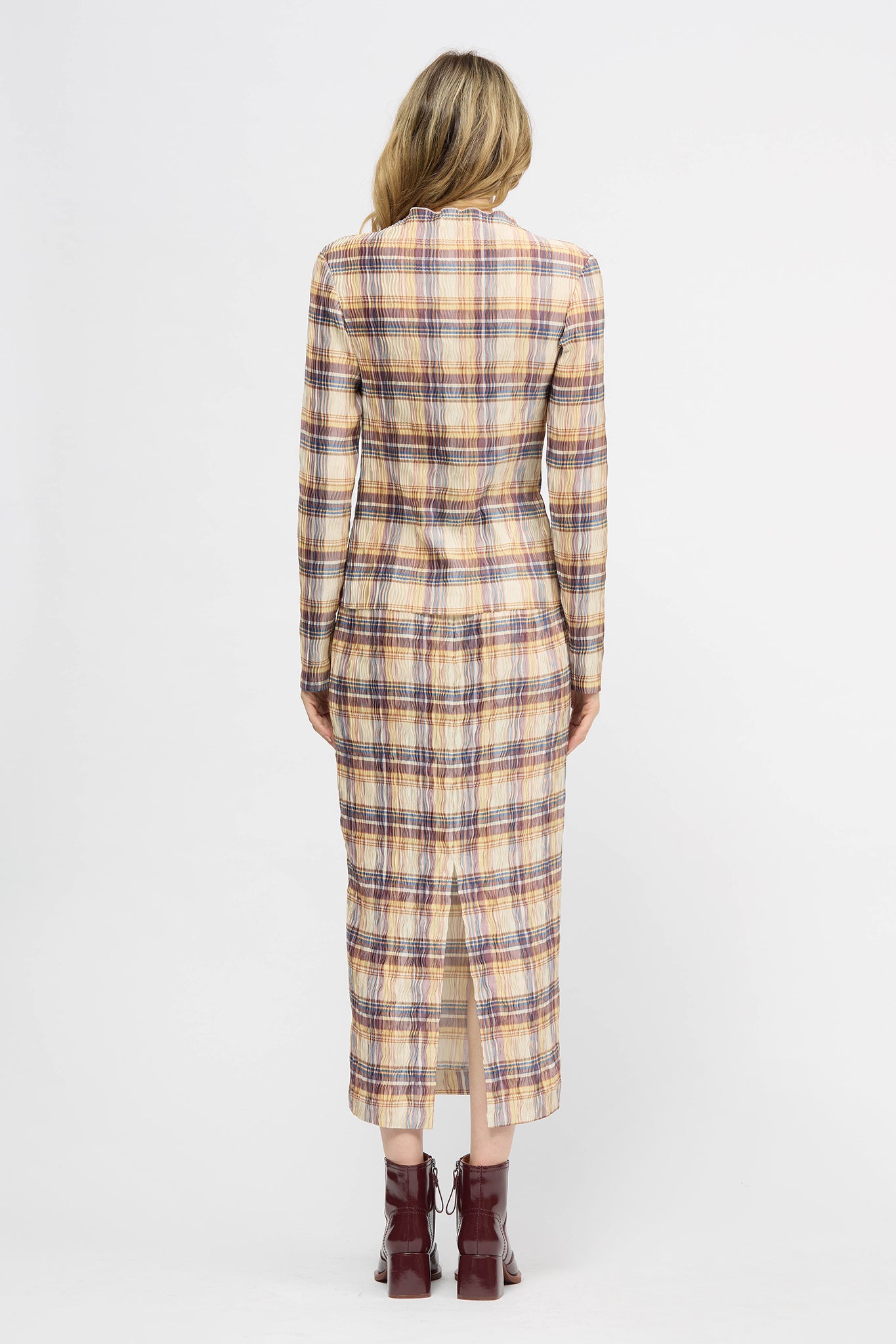 Our model is wearing a size AU 8 and is 177cm tall. She has an 81cm bust, 61cm waist and 89cm hips.