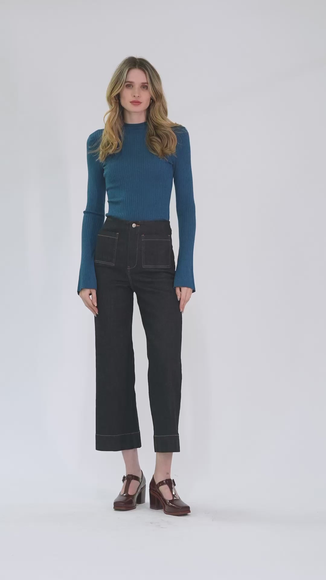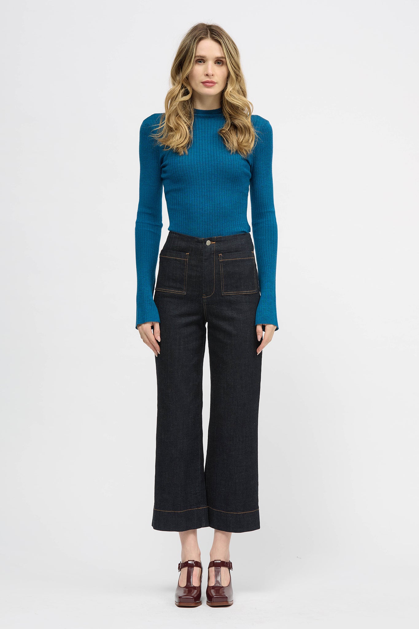 The Coole Jean is a high-waisted, crop length style with a wide leg. Features include front patch pockets, contrast stitching and búl’s Nouveau Logo embroidery detailing. Made in stretch denim. This style can be paired with the Rother Denim Jacket for a double-denim set.